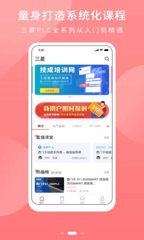PLC学吧是一款专业的三菱PLC手机学习软件,能够为用户提供大量相关的知识内容,涵盖电气基础、定位控制、通信控制、指令与编程等优质的学习课程,可以帮助用户更好的通过手机在线进行学习,并且这里还为用户提供了大量优质的直播课程,你可以进入直播间与老师进行互动交流学习,不懂的各种问题都可以进行咨询,可以为您详细的解答,方便你更好的理解。