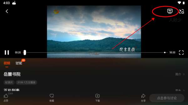 3、点击视频任意位置,弹出下图窗口,点击右上角投屏图标。