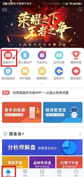 1、打开国金好交易app-点击期货开户-选择开立期货账户。