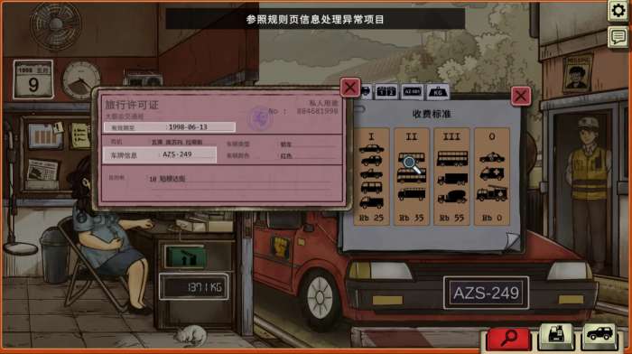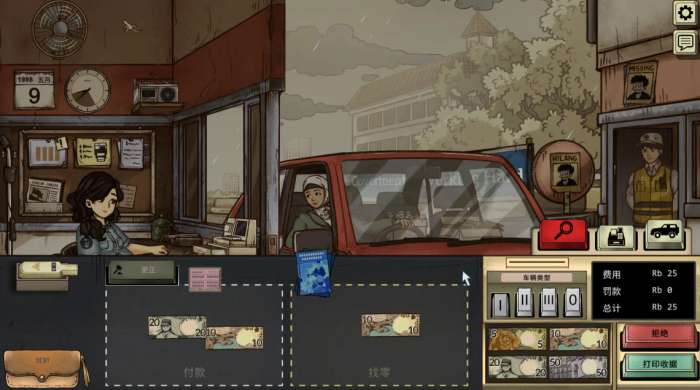 2、随着所在时代的动荡格局愈演愈烈,这份工作也不是那么好做了,从最开始的仅收费+找零,到验钞、用金属探测器探索违禁品、查证件信息、派发传单......由简入繁贯穿整个游戏,从最开始的得心应手,到后面的手忙脚乱,虽说是收费员模拟器,倒也并不无聊。
