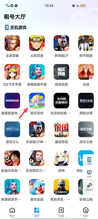 1、进入软件注册登录后,在“租号大厅”选择想要租的游戏类型。