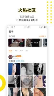 软件上面汇聚了数十万优秀的纹身师傅,而且用户可以在这里看到许多纹身的图案,你可以迅速找到自己喜欢的作品,而且软件与全国许多家纹身店都有合作,如果您有这方面的意向,软件会为您推送最近的纹身店,让您享受最方便的纹身服务。