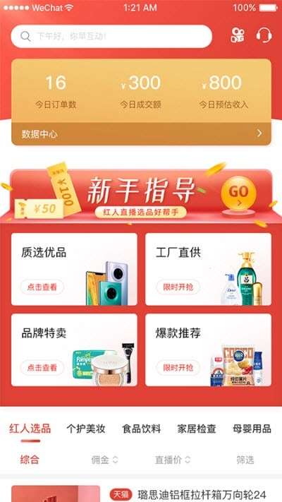 红人选品基于庞大的红人商品资源,帮助厂家快速销售商品
