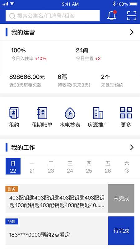 1、支持在线进行房产管理和租客管理,能够让用户享受轻松便捷的各种服务,感受简单的管理方式。