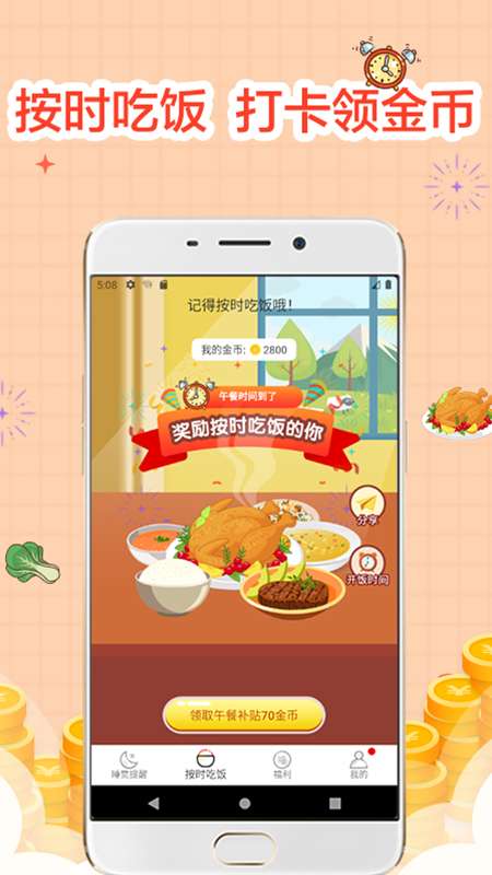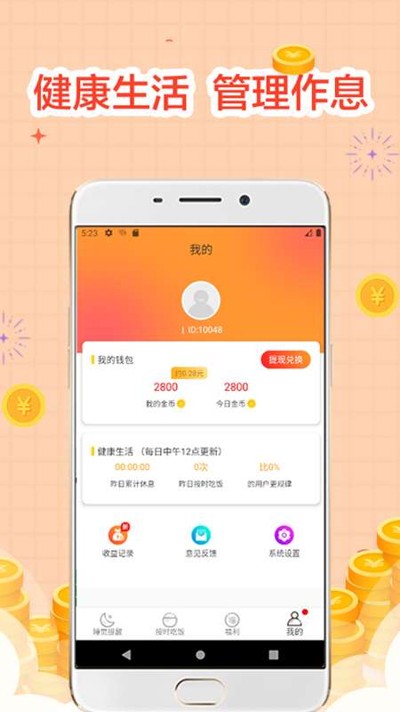 4、基本生活你得按时吃饭打卡,按时睡觉打卡,生活质量提高,即可获得许多的零花钱红包。