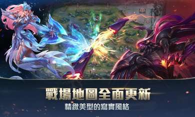 2、包含“传说战场”的5v5三路推塔、“黑城竞技场”的1v1对决、“机运对决”的5v5中路乱斗模式。游戏中目前有45名英雄可供玩家选择,而人物画风也是制作团队根据台湾玩家喜好,经过无数次大幅度修改后才定调