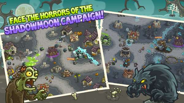 具有多种战术决策的魔幻塔防游戏。用户能使用诸如增援、陨石攻击、英雄等实力超凡的元素。