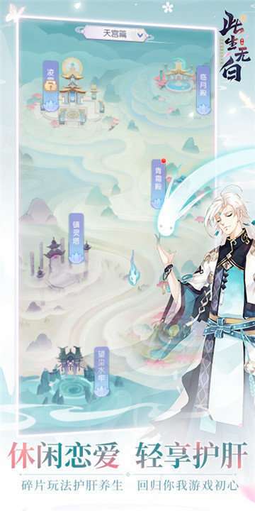 《此生无白》是一款国风仙缘社交手游,百万字原创剧本为你带来一段跨越千年的溯世之恋。在游戏中,你将化身镇灵特使,在寻找圣物的救世之路上,与上仙“君无白”共同创造一段段唯美浪漫且反转不断的故事。在这里,你可以结交各族绮幻生灵,观众生百态,探各方秘闻,也可与仙友云游四海,闲坐花下、仙宫小酌。