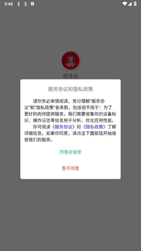 1、在本站下载安装找号玩app,同意相关的政策与协议之后打开。