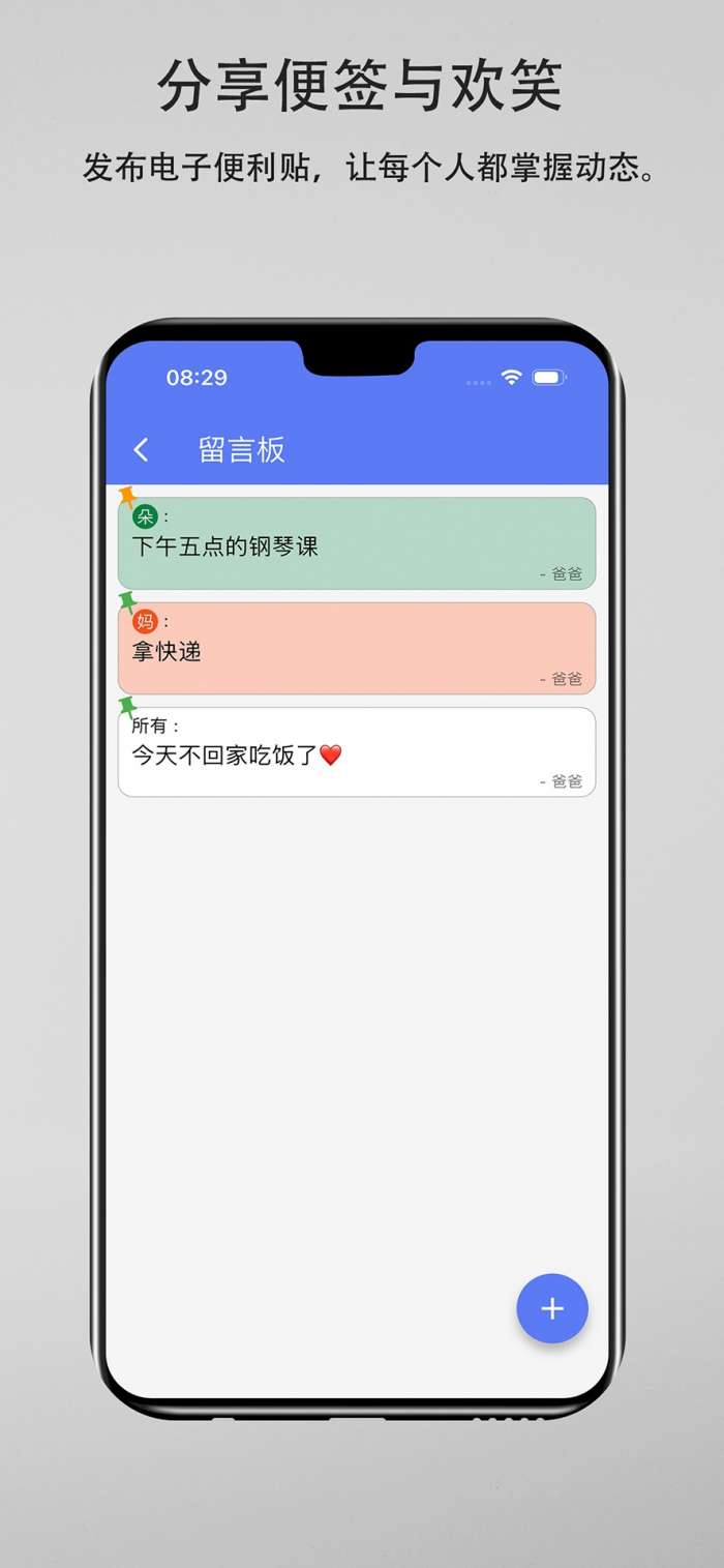 3. 家庭留言板:像冰箱贴一样发布 数字便签,分享信息、留言或给家人鼓励。