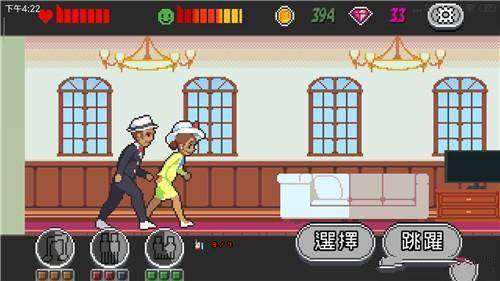 1、游戏的玩法很简单,就是横版跑酷的玩法。在游戏的右边有两个按键进行操作,一个是选择键,当你遇到某些特殊事件时,比如选择兴趣,选择对象、买车买房等等,这将影响你后面游戏的结局
