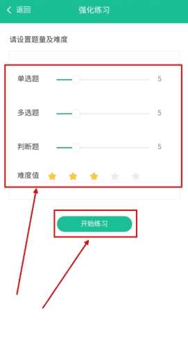 4、在此步骤中,用户首先要依据自身期望练习的题量,自行设定好试卷的题量,随后选好难度值,便能够开始练习了。