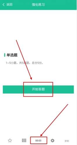 5、完成试卷难度与题量的设定后,直接点击【开始答题】,即可进入答题状态。页面下方设有时间显示,用于统计你此次练习的总时长。
