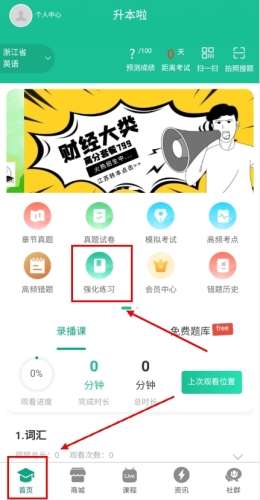 3、接着还是回到【首页】当中,需要在上面功能大全里面找到【强化练习】,并点击进入;