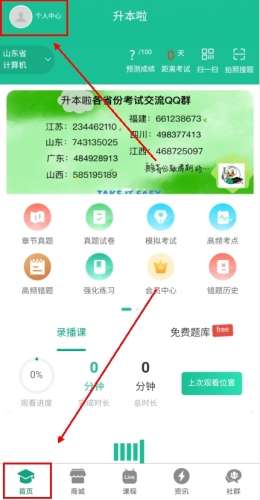 1、完成升本操作并进入后,用户首先需要登录账号,方可使用所有功能,随后点击左上角的【个人中心】。