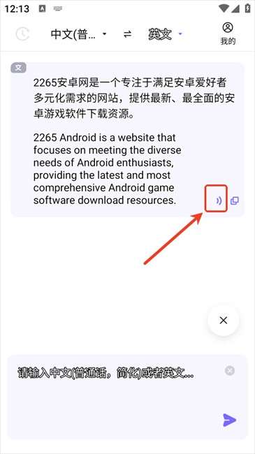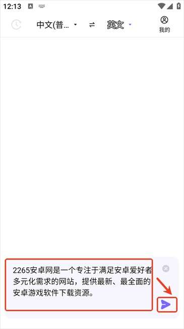 3、这里以文本翻译为例将需要翻译的内容输入或粘贴进来,接着点击发送按钮。