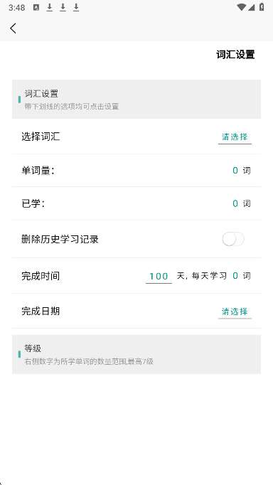 2、学习计划 应用中有学习计划,可以按计划进行学习,循序渐进地提高单词能力。