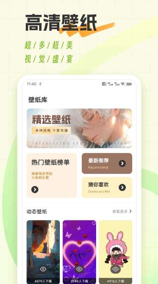 软件提交 专题合集 热门手游如果你想要一款独一无二的个性壁纸软件的话,那么今天这个app大全你一定不能错过。这个大全中的软件提供了丰富多样的壁纸和背景主题。你可以根据自己的喜好选择各种各样的图片,例如自然风光、抽象艺术、明星偶像、卡通动漫等等。你甚至可以使用自己拍摄的照片或者设计的图案作为壁纸真正实现个性化定制。你可以设置软件自动定期更换手机壁纸让每一天都有新鲜感,这个功能让你可以轻松享受每天都有新的惊喜和变化的乐趣消除单调和厌倦感。
