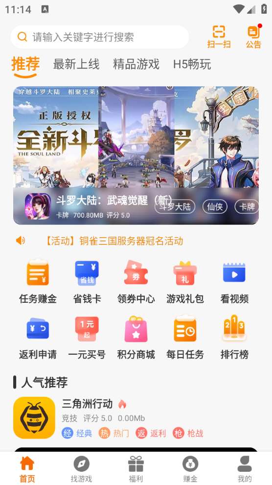 2、在首页和找游戏板块为玩家提供了丰厚的游戏资源,可以上下滑动进行浏览。