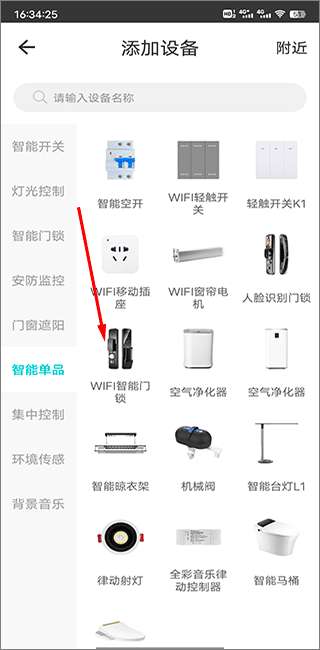 3、您还可以使用“附近”功能自动搜索附近的智能设备进行添加。