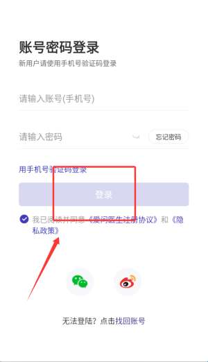 2、选择帐户密码或电话号码验证码登录,查看协议并登录。