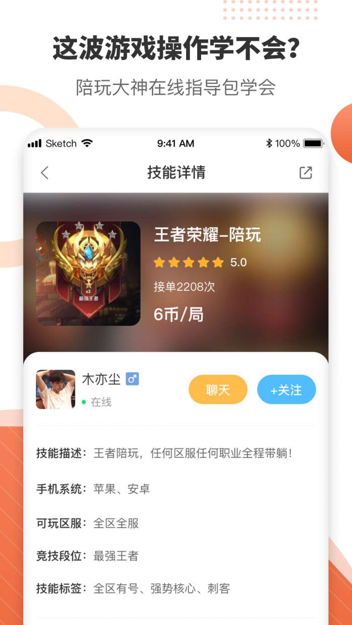 2、还有着许多的陪伴以及代练,可以让你在手机APP上面一键就可下订单。