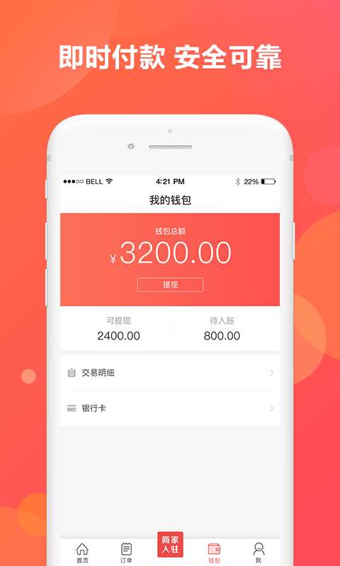 2、即时到账安全可靠,通过我的钱包功能了解收益的金额,还能查看历史交易明细,为您随时保存账单。