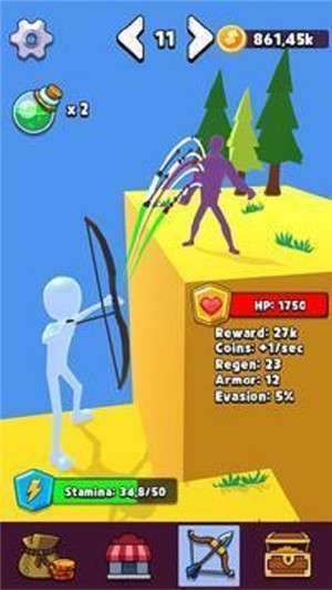2、操作简单可以使其更易于游玩。玩家将控制摇杆射击箭头。要击败更多的敌人,你会面临各种各样的敌人。对抗对手的低位和高位,击败它。玩家可以使用自己的操作来防止对每个敌人的攻击并获得更多的游戏奖励。只需要一些时间享受日常乐趣。