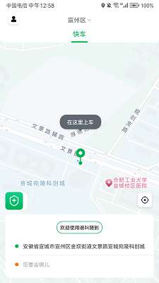 3、在首页中,可选择上车位置以及目的地,快速的进行打车。