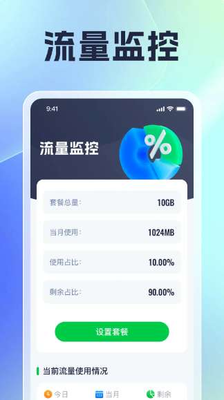 风云上网宝是一种APP部署软件,提供专业的流量管理和监控记录功能,可以随时查看总流量数据、当前流量、流量使用率和剩余流量统计信息。从而使用户获得高效便捷的流量管理,更便于今后流量数据的监控和管理。此外,风云上网宝内置号码归属地搜索功能,输入号码即可即时获得结果,用户可以通过该软件监视每月流量的使用情况。感兴趣的朋友不要错过下载风云上网宝。