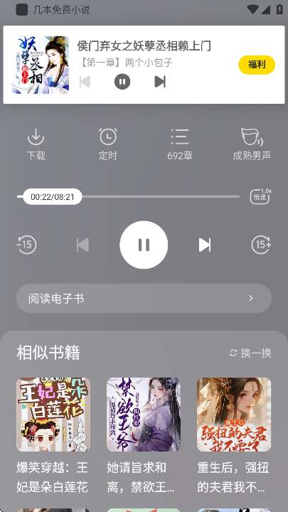 几本免费小说是一款简单的免费看书阅读神器,拥有丰富的小说书籍资源可以选择,轻松在线阅读看书,还提供热门小说书城和书单主题,可以为用户呈现最新且受欢迎的小说,随时随地免费阅读喜欢的小说,能完全满足用户的所有阅读需求,还具有多样化的小说阅读界面,自由调整小说字体大小,阅读背景等功能和选项,免费阅读感兴趣的小说和最新内容,轻松享受优质的追书阅读之旅,有兴趣的用户欢迎下载。