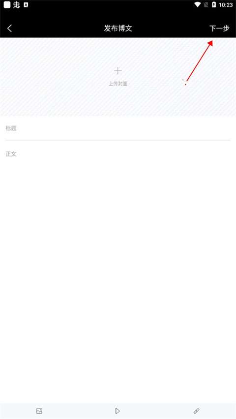 4、上传封面,输入标题和正文,点击下一步。