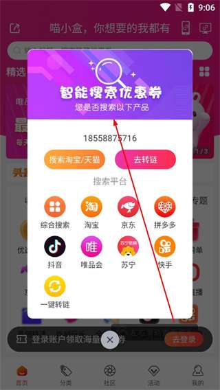 1、打开软件,可以粘贴链接,获取一些优惠活动,不需要的话可以关闭该页面。