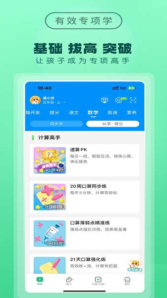 4、学习报告:每周生成个性化学习分析报告,清晰呈现掌握情况、薄弱环节和进度趋势。