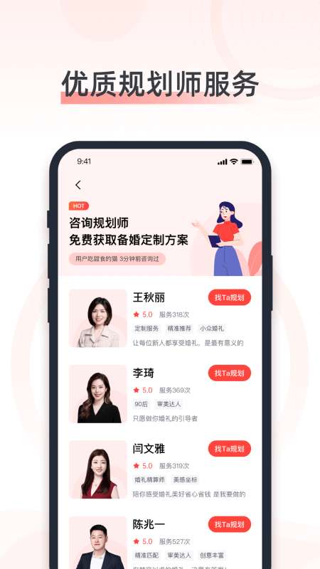 3、为用户带来非常高品质的婚礼筹备体验,方便用户轻松筹备婚礼。