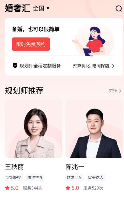 婚奢汇app是一款主打结婚用品的购物平台。该软件为用户提供专业的规划服务。在这里,用户可以规划自己的婚礼。一对一的服务可以帮助用户轻松使用,实时满足他们的个性化需求。软件中也有许多精心挑选的婚礼项目。用户可以根据自己的需要进行购买。里面提供的好货都有,用户可以自由选择。可以更加专业的帮助用户完成美好的结婚流程。