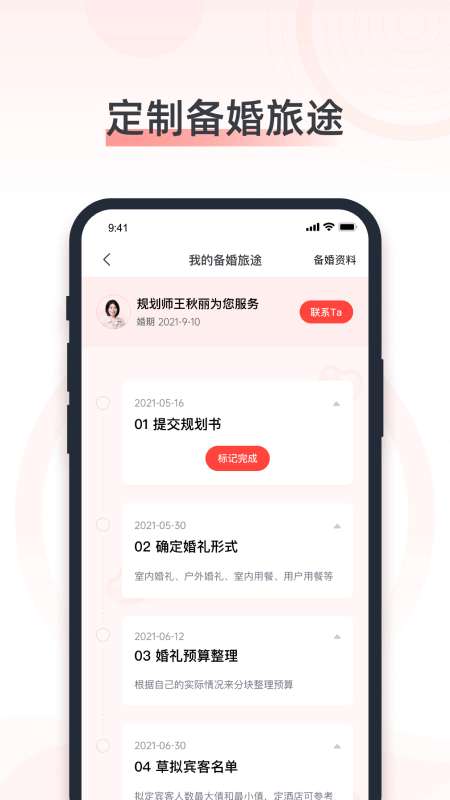 3、用户还可以在这里定制自己的婚礼准备行程。