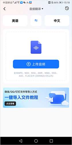 3、然后将手机中的音频文件或者微信、qq中的音频文件上传即可