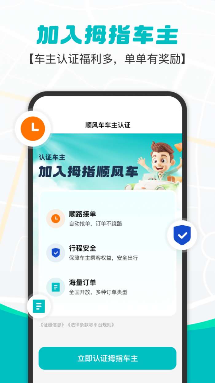 1、拇指出行、海量顺路单,轻松赚油钱。