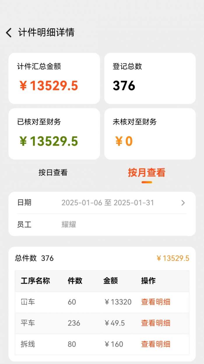 4、计件统计的所有数据信息都可以在计件管理功能中查看。