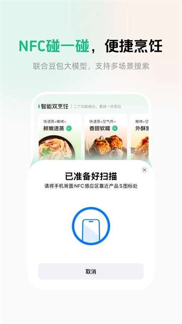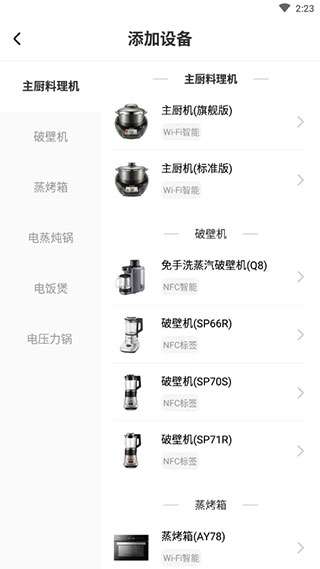 2、智能设备互联:一键连接到智能家电,如苏泊尔电饭煲、炒菜机、蒸烤箱等。