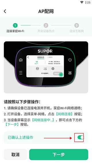 5、按照要求设置好设备,完成后勾选【已确认上述操作】,点击【下一步】。