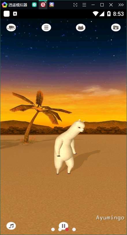 1、选择好一段音乐节奏之后,就可以控制自己羊驼开始移动,可以先点击摄像按钮开始录屏,然后就可以跟着音乐让你的羊驼动起来了。