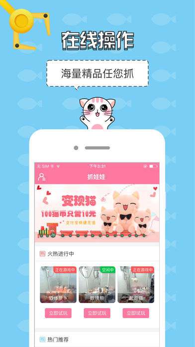 真实模拟线下抓娃娃体验,登录APP想抓就抓,在家就能轻松抓娃娃!