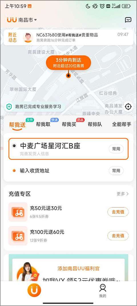 UU跑腿是一款非常实用的跑腿送货软件,拥有丰富的功能选项,还为用户提供同城送货、取件、送花、排队等一系列服务,自由享受全面的体验,轻松将订单号发送给快递员并支付一定金额,自由完成各种跑腿送货,能完全满足所有使用需求,还能自动计算离您最近的送货员,轻松将各种订单信息推送给送货员,可以很快进行取货物并运送到目的地吗,自由咨询客服来解决各种跑腿送货问题,有兴趣的用户欢迎来下载软件。