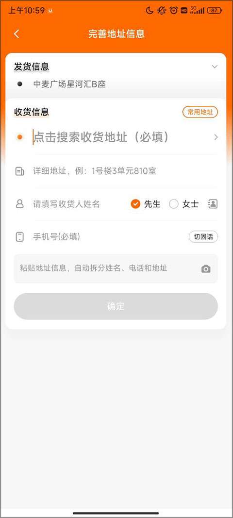 2、首先,填写托运人信息,以便跑腿员更快地找到您。
