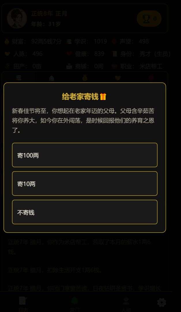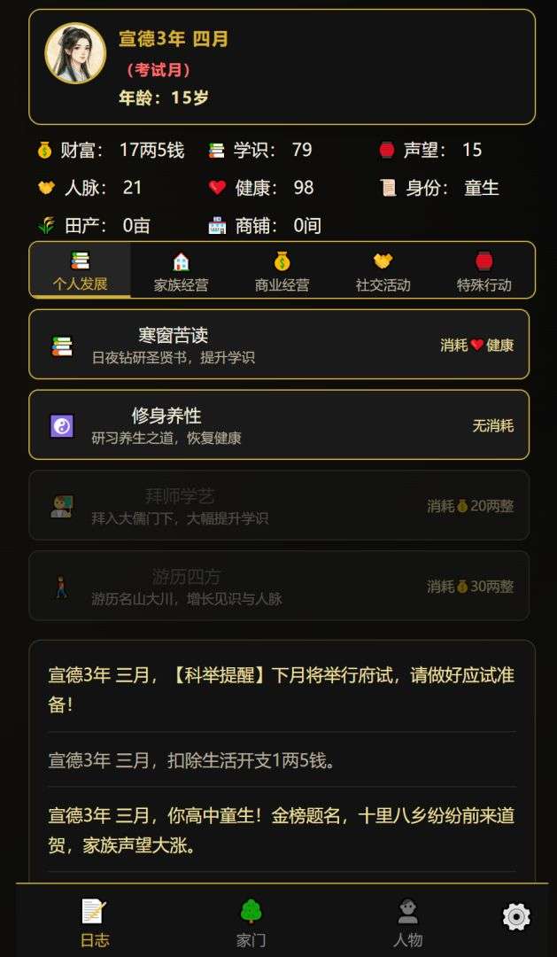 2、人生路线丰富多样,不管是想走仕途、闯商海还是兴家族,都能实现,满足不同玩家的游戏喜好和追求。