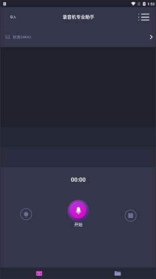 1、现场本站下载安装录音机专业助手,打开软件,将会进入主页面,无需登入,即可直接使用。