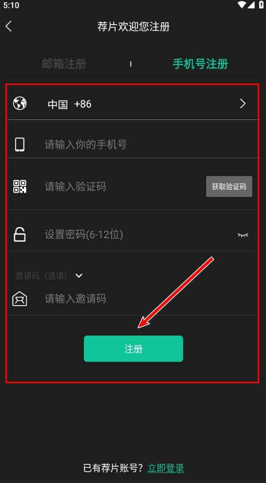 3、第一种方式是点击手机号注册,填写红色框框里面的信息,点击注册即可。