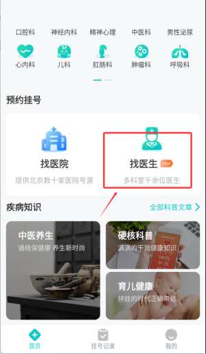 1、进入页面查看全部科室的分类信息并选择科室查找医生。